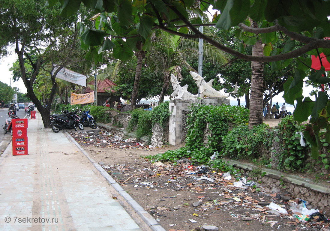Самые известные пляжи, Кута и Легиан, славятся горами мусора. У нас сложилось впечатление, что на Бали отсутствует такой сервис, как вывоз мусора. "Не положено" и все тут. Вероятно поэтому здесь невероятно много мух. Так много, что на улице обедать не очень комфортно.